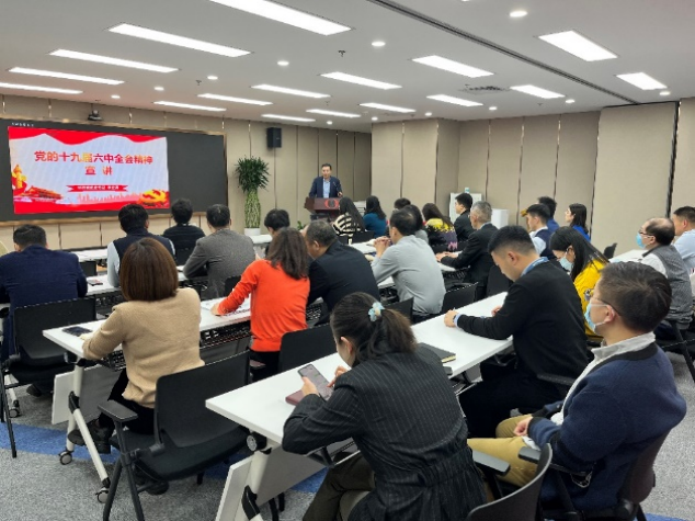 12月23日下午,华洋海事中心党总支组织全体党员开展学习贯彻党的十九届六中全会精神宣讲会。由华洋党总支书记李立谦作宣讲报告,华洋全体党员、积极分子、青年理论学习小组代表聆听宣讲。