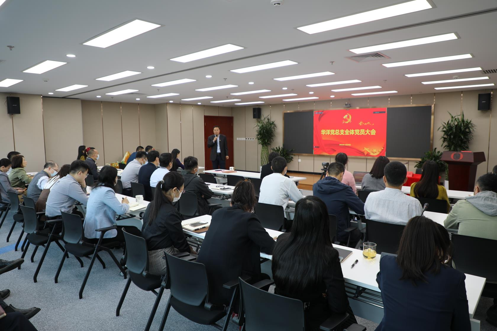 10月25日上午,华洋海事中心有限公司党总支召开全体党员大会,华洋党总支全体党员、积极分子、青年理论学习小组成员参加了本次会议,党总支部书记李立谦同志主持。会议共分三项议程: